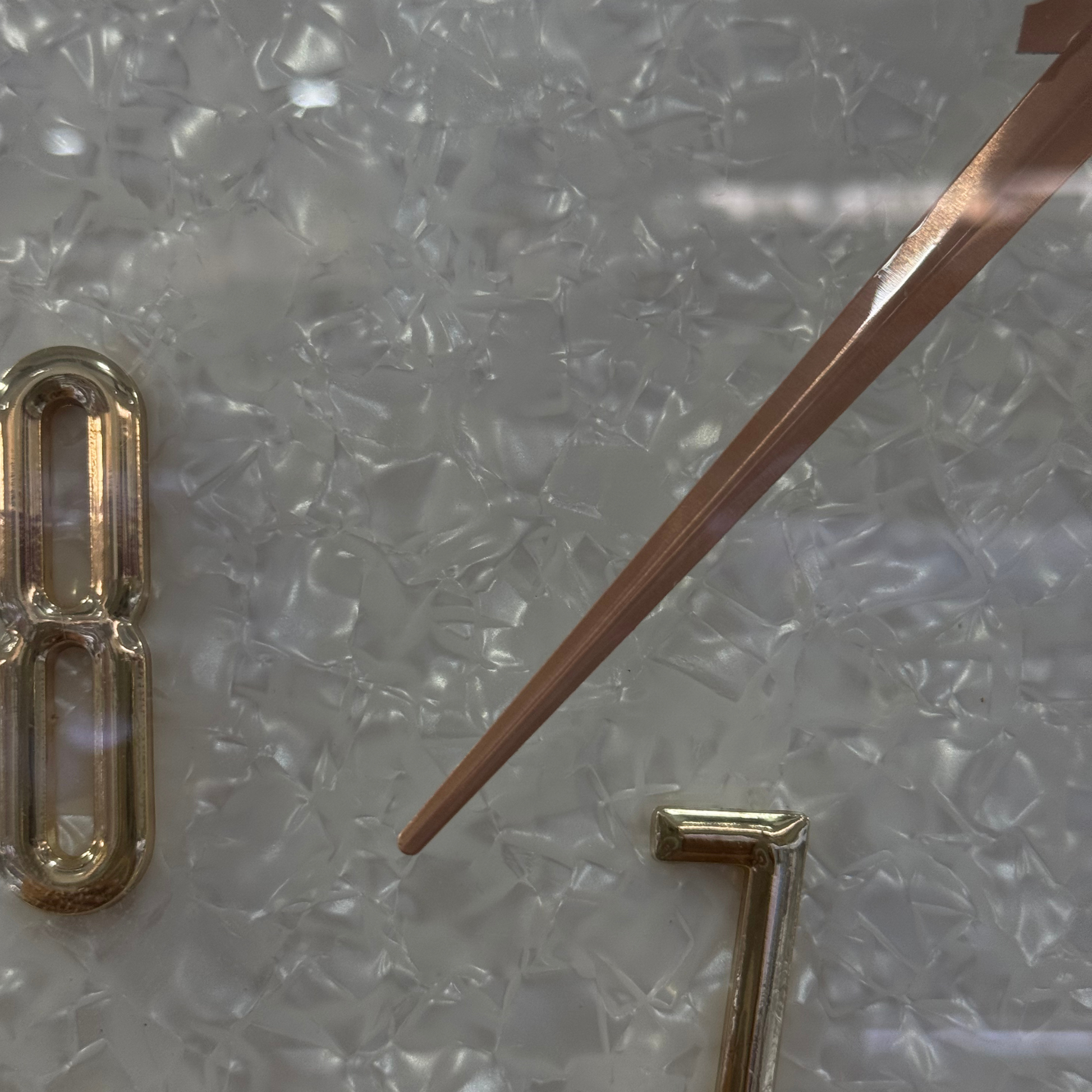 The Compas Premium Wall Clock B3526 features a sophisticated rose gold frame that beautifully complements its white dial. The dial showcases an elegant pattern, adding a subtle decorative touch while maintaining clear readability. This clock combines style and functionality, making it a perfect addition to any room that values both design and practicality.